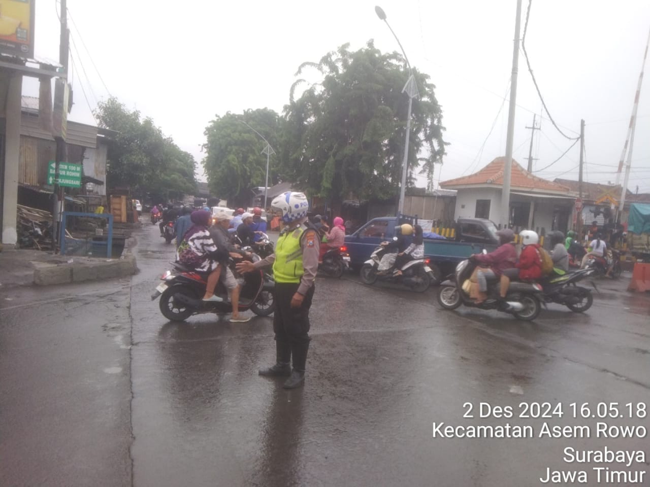 Seputarperak.com – Personil Polsek Asemrowo melaksanakan patroli lalu lintas di sekitar rel kereta api Tambak Mayor pada Senin, 2 Desember 2024. Patroli ini dilakukan sebagai langkah antisipasi untuk mencegah kemacetan dan potensi kecelakaan lalu lintas yang dapat terjadi di kawasan tersebut.