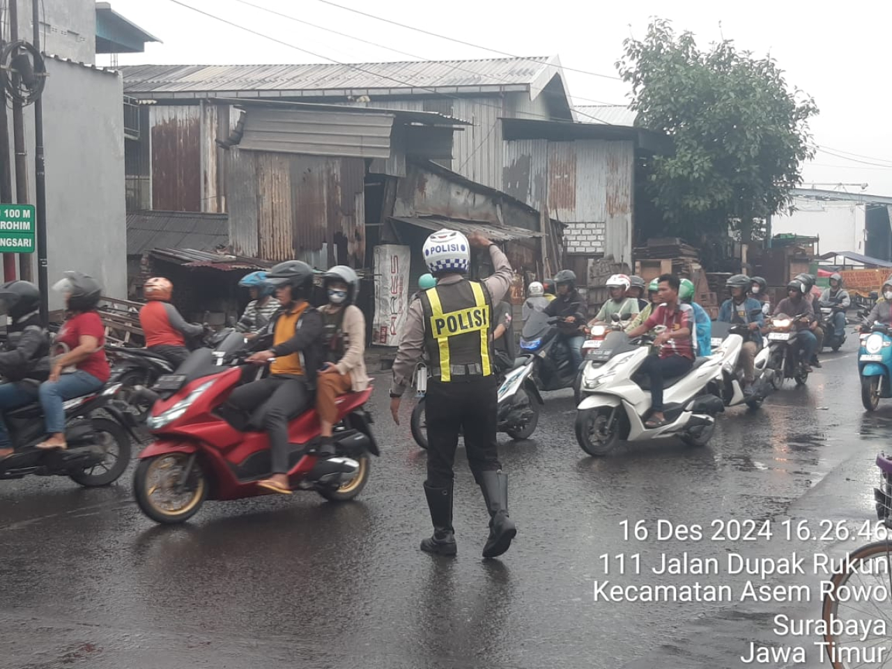 Seputarperak.com- Personel Polsek Asemrowo melaksanakan kegiatan patroli dan pengaturan lalu lintas sore di sekitar rel kereta api Tambak Mayor pada Senin, 16 Desember 2024. Langkah ini diambil untuk mengantisipasi potensi kemacetan yang sering terjadi akibat padatnya aktivitas kendaraan di sekitar perlintasan kereta api, terutama pada jam-jam sibuk. Selain itu, patroli ini juga bertujuan mencegah terjadinya kecelakaan lalu lintas yang berpotensi mengancam keselamatan pengguna jalan.