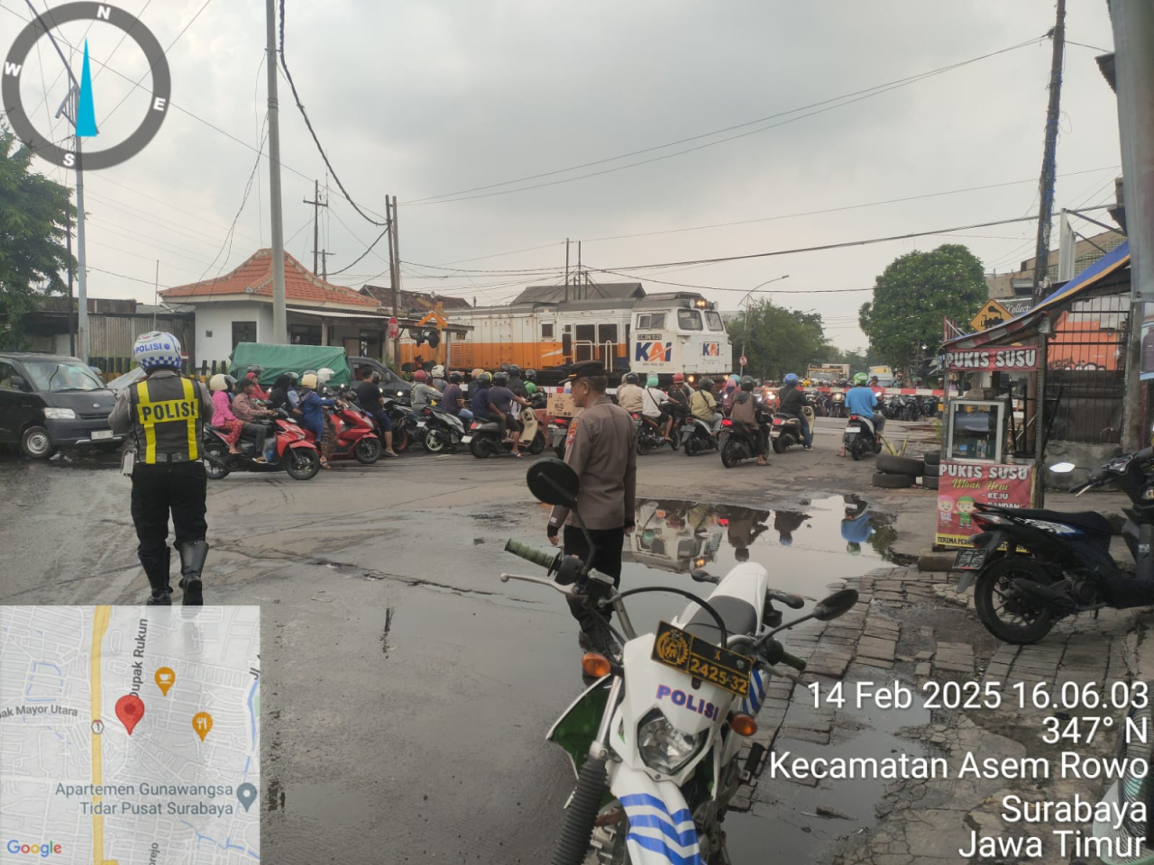 Seputarperak.com – Personil Polsek Asemrowo melaksanakan giat pos akhir dengan melakukan pengaturan arus lalu lintas di sekitar rel kereta api Tambak Mayor. Kegiatan ini bertujuan untuk mengantisipasi kepadatan kendaraan, terutama saat jam pulang kerja, serta memastikan kelancaran arus lalu lintas bagi pengguna jalan.