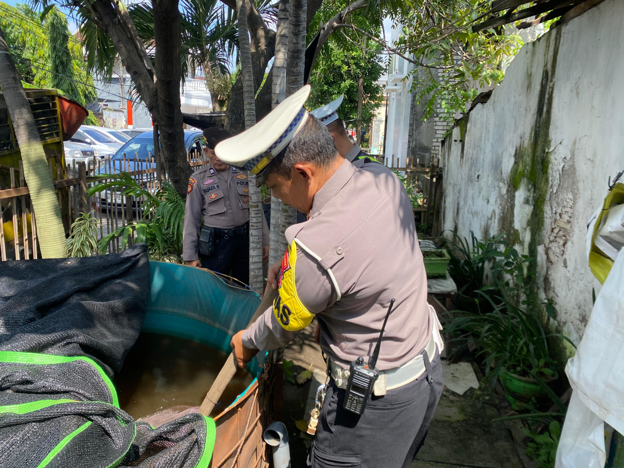 Dalam kegiatan ini, personil turut memantau pelaksanaan program ketahanan pangan yang digalakkan oleh pemerintah, khususnya budidaya ikan lele yang dikelola oleh masyarakat setempat. Pemantauan dilakukan guna memastikan program berjalan lancar dan aman dari potensi gangguan kamtibmas.