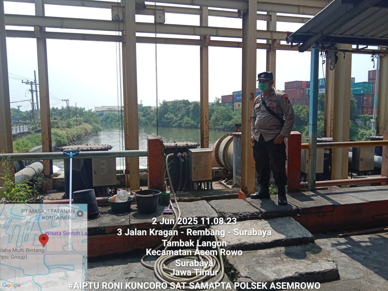 Seputarperak.com – Pada hare Senin, 2 Juni 2025, personil Polsek Asemrowo melaksanakan patroli pengamanan sekaligus pemantauan pompa air Balong II yang berlokasi di wilayah Jalan Margomulyo, Surabaya. Kegiatan ini dilakukan sebagai bentuk kesiapsiagaan menghadapi potensi banjir yang bisa terjadi akibat cuaca ekstrem maupun pasang air laut.