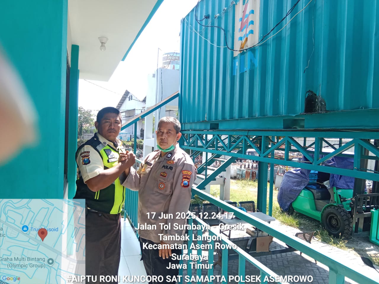 Seputarperak.com – Pada Selasa, 17 Juli 2025, personel Polsek Asemrowo melaksanakan kegiatan patroli rutin di kawasan Pergudangan PLN Tambak Langon, Surabaya.