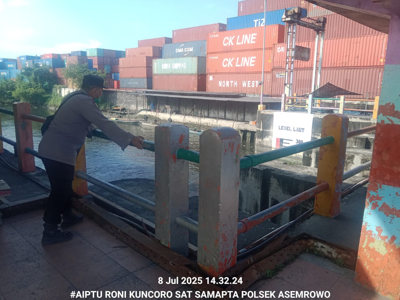 Seputarperak.com – Selasa, 8 Juli 2025, personel Polsek Asemrowo melaksanakan patroli kewilayahan sekaligus pemantauan debit air di kawasan pintu air Balong, Surabaya.