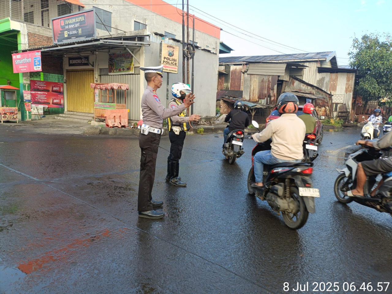 Seputarperak.com – Selasa pagi, 8 Juli 2025, personel Polsek Asemrowo dari Unit 12 bersama piket fungsi lalu lintas melaksanakan kegiatan pos awal di sekitar perlintasan kereta api Jalan Tambak Mayor, Surabaya. Kegiatan ini merupakan bagian dari pelayanan pagi untuk memastikan kelancaran mobilitas warga di jam sibuk.