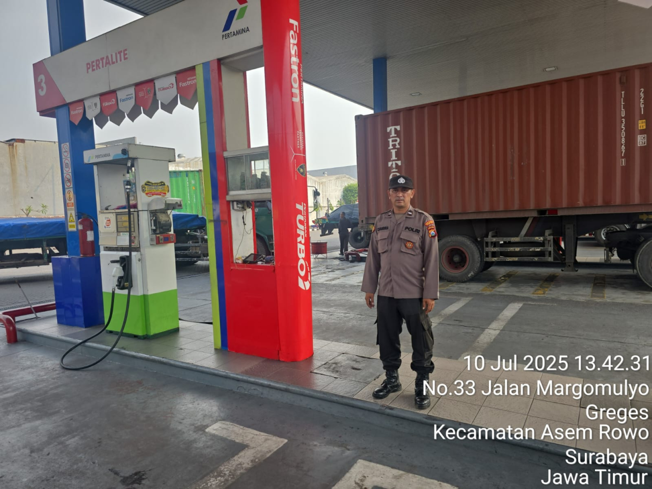 Seputarperak.com – Pada hari Kamis, 10 Juli 2025, personel Rowo 14.2.2 melaksanakan patroli pemantauan di SPBU Margomulyo No. 33, Surabaya, untuk memastikan ketersediaan bahan bakar serta menjaga situasi kamtibmas tetap kondusif.