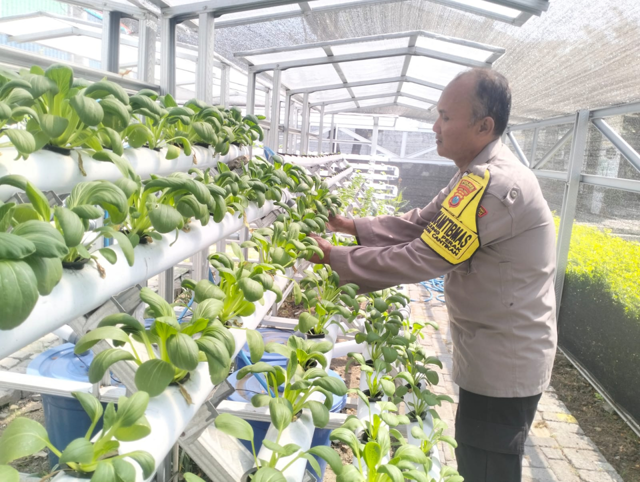Kegiatan tersebut dilakukan sebagai bentuk dukungan Polri terhadap upaya masyarakat dalam meningkatkan ketahanan pangan lokal melalui sistem pertanian modern berbasis hidroponik. Dalam kesempatan itu, Aiptu Farid berdialog langsung dengan petugas kebun serta memberikan pembinaan terkait perawatan tanaman hidroponik agar hasil panen dapat lebih maksimal.