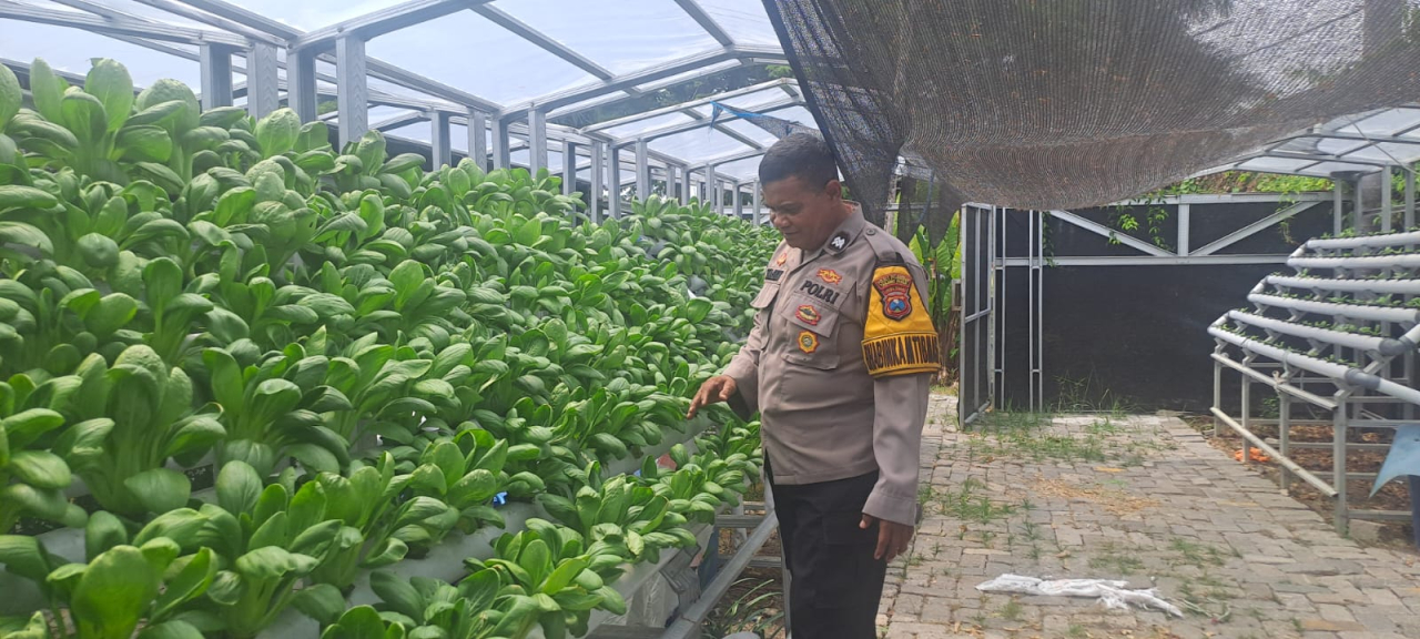 Bhabinkamtibmas meninjau dan memantau secara langsung tumbuh kembang tanaman sayuran sawi daging atau pak choy yang saat ini telah menunjukkan perkembangan yang baik dan dalam waktu dekat akan memasuki masa panen. Kegiatan ini bertujuan untuk memastikan program ketahanan pangan berjalan dengan optimal serta memberikan motivasi kepada kelompok tani agar terus konsisten dalam merawat dan mengelola tanaman hidroponik.