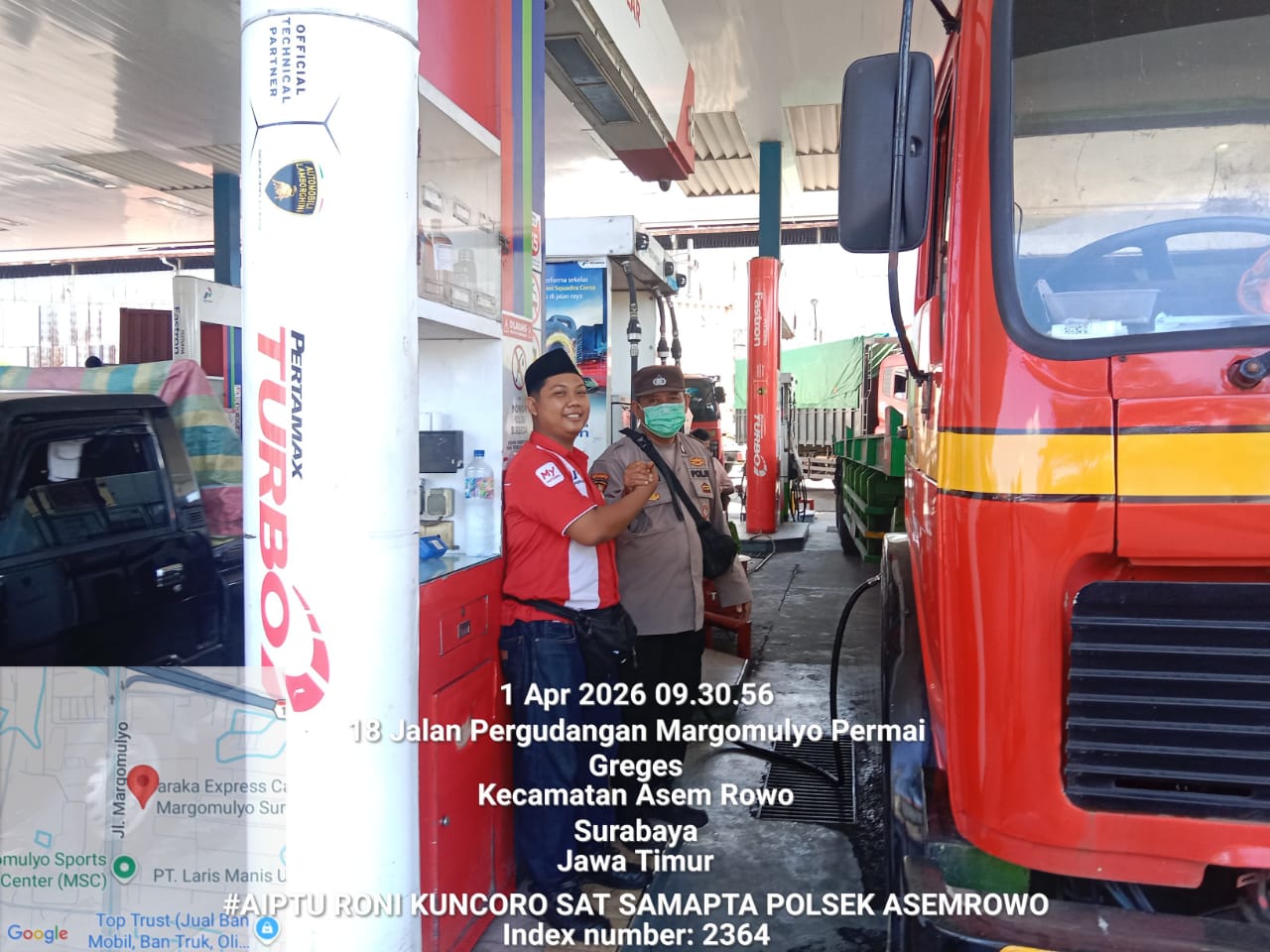 Seputarperak.com – Rabu, 1 April 2026 Personel Polsek Asemrowo melaksanakan kegiatan patroli dan pemantauan di SPBU Jalan Margomulyo No. 30, Surabaya, sebagai upaya mengantisipasi potensi gangguan kamtibmas khususnya tindak kejahatan 3C serta kerawanan lainnya di kawasan tersebut.